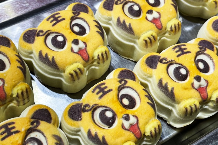 Tiger-shaped pastry spices up New Year atmosphere