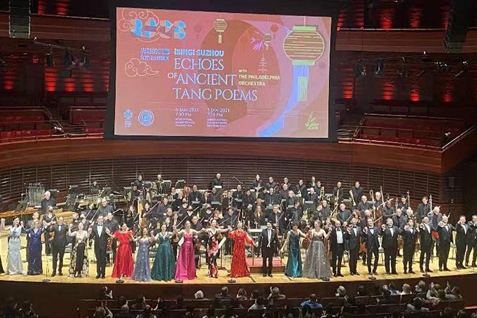 A music concert "Echoes of Ancient Tang Poems" jointly performed by iSING! Suzhou and the Philadelphia Orchestra was staged at Kimmel Performing Arts Center in Philadelphia on Jan 6.
