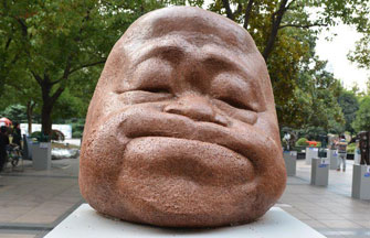 A sculpture of Chinese writer Mo Yan shown in an exhibition in Shanghai sparks debate, with some saying it's "cute" while more saying it's uglifying the Nobel Prize laureate.