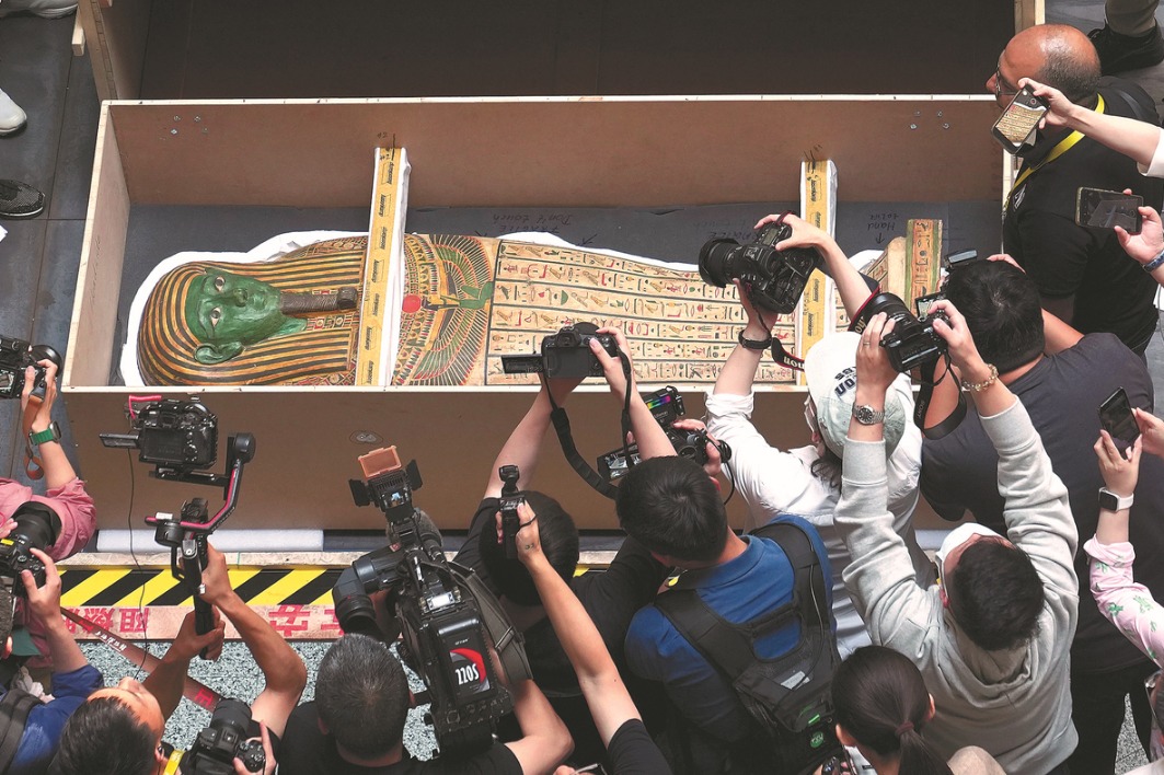 More than 700 artifacts from Egypt arrived in Shanghai on Sunday for an exhibition at the Shanghai Museum, with over 95 percent to go on display for the first time in Asia.