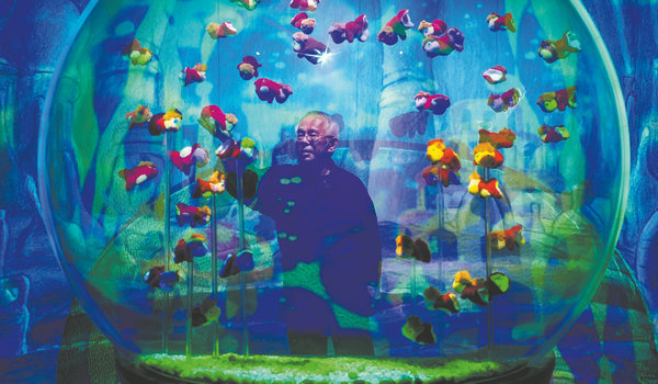 The Studio Ghibli Story Immersive Art Exhibition, the first of its kind in the country, provides an up-close experience of legendary Japanese animator Hayao Miyazaki's classic movies, such as Ponyo, with Toshio Suzuki, chairman of Studio Ghibli, admiring the film-inspired scene. [Photo provided to China Daily]