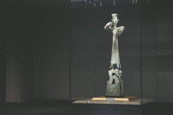 The grand bronze standing man represents one of Sanxingdui's biggest myths. [Photo/THE SANXINGDUI MUSEUM AND THE SHANGHAI MUSEUM]