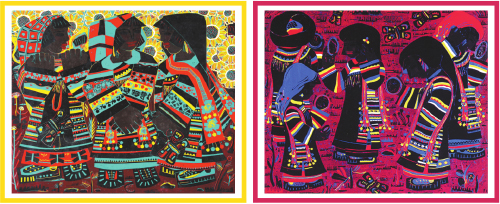 Two woodblock prints of the prizewinning Lahu Human Scenery series by Zheng Xu reveal the distinctive ethnic culture in Pu'er, Yunnan province. [Photo provided to China Daily]